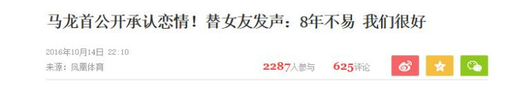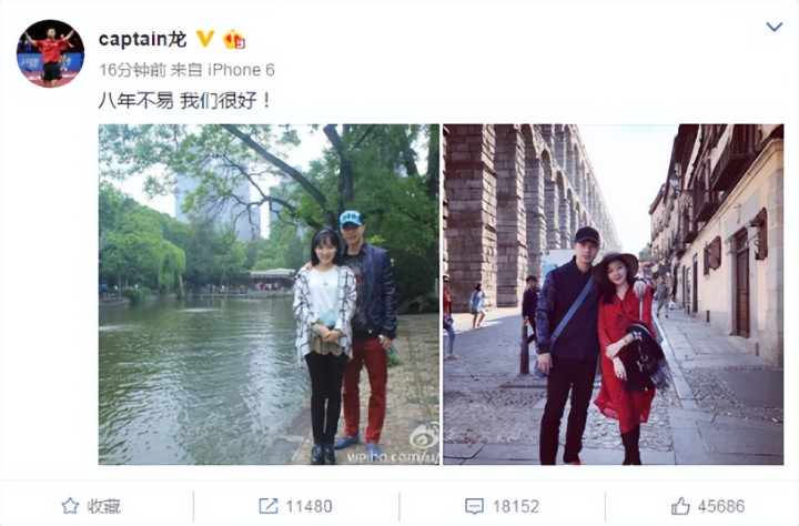 2016年10月,马龙在微博公开了与夏露的恋情。 晒出两东谈主合影并附文“八年不易,咱们很好”。
